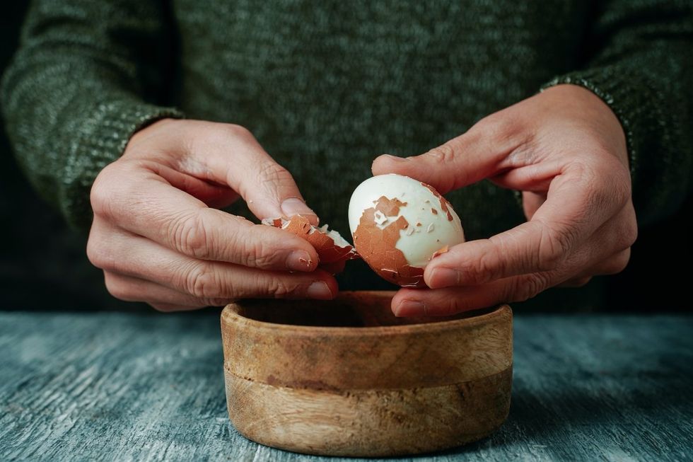 We've all mangled a hard-boiled egg before. Weissman says to lightly crack your boiled egg, then roll it around and around on a hard surface until there are lots of tiny cracks, then submerge the egg in a bowl of water and peel under the water.
