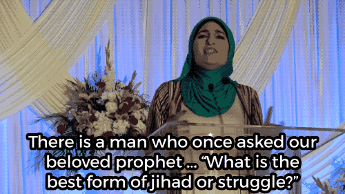The nearly 23-minute speech touches on organizing, activism, building bridges within the community, standing up to oppressors, and a host of other topics that are well worth a watch if you've got the time. The key moment that seems to have been left out of many of the more sensational reports came when she actually defines "the best form of jihad" as "a word of truth in front of a tyrant ruler or leader."