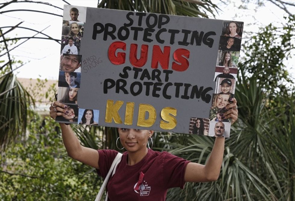 "Stop protecting guns, start protecting kids." Photo by Rhona Wise/AFP/Getty Images.