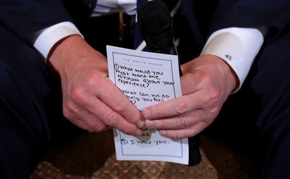 Trump's notes for the event, which included a reminder to say "I hear you," were roundly mocked on social media afterwards. Photo by Chip Somodevilla/Getty Images.