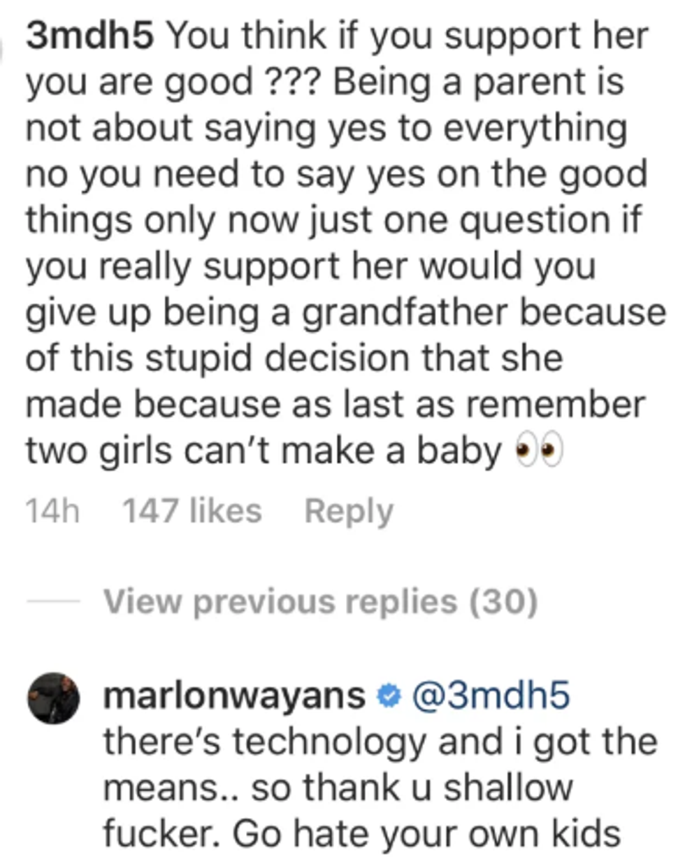 Marlon Wayans is not here for ignorant commenters coming onto his Instagram page to share their small world perspectives about his gay 19-year-old daughter Amai.