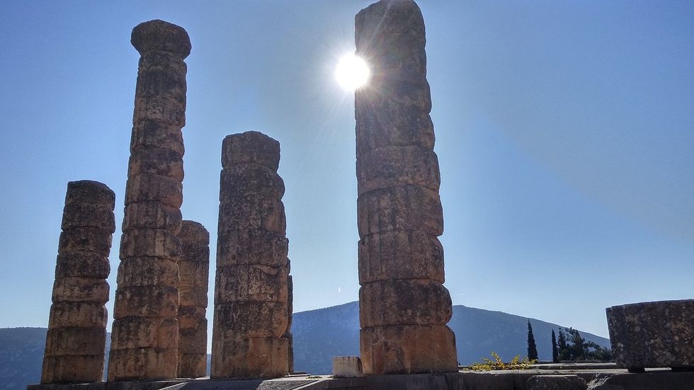 At the ancient Greek site Delphi, you'll find a stone altar, three feet tall, bearing a carving of the iconic Olympic rings.