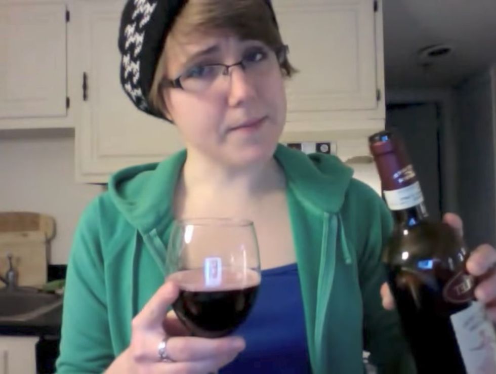 Hart in the first episode of "My Drunk Kitchen." Image via