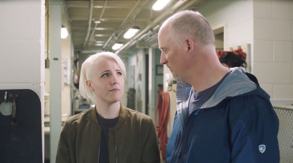 Hannah Hart and Paul Nicklen at a seal rehab in Season 3 of "While the Water Boils." Image via "While the Water Boils"/YouTube.