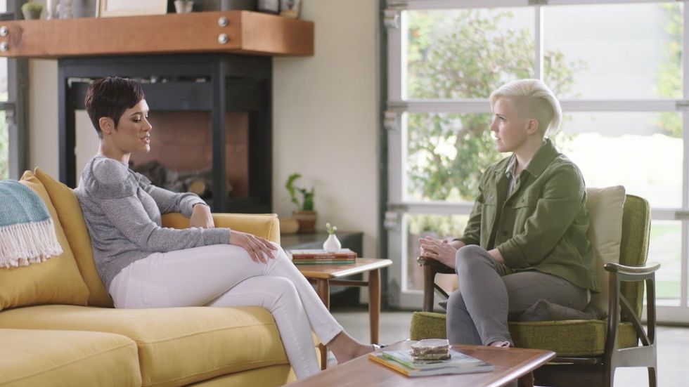 Hannah Hart and Grace Byers talk card games in Season 3 of "While the Water Boils." Image via "While the Water Boils"/YouTube.