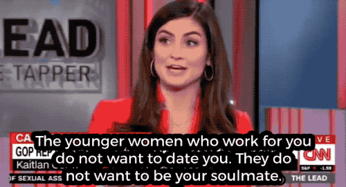 "Let this just be a message to all of the grown men out there that the younger women who work for you do not want to date you," Collins said. "They do not want to be your soul mate. They do not want to go to ice cream with you. They do not want to be your partner."