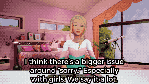 Do you find yourself apologizing when you didn't do anything wrong? If somebody bumps into you, do you ever find yourself reflexively responding, "Sorry?" Or have you ever apologized for a normal reaction to something that made you happy, sad, or excited? That's what Barbie talks about in this video.