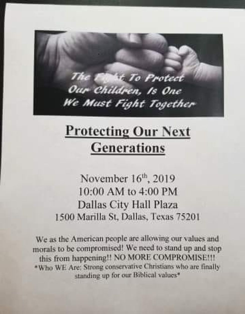 The march was promoted by Protecting Our Next Generations (PONG), an anti-LGBT group who says they are "Strong conservative Christians who are standing up for our Biblical values."