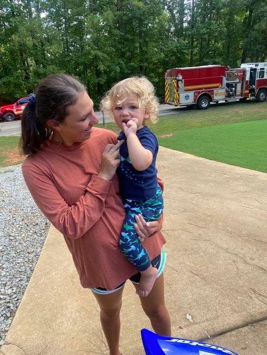 Who knew playing with bubbles could lead to such an amazing outcome. Ethan certainly has quite a story for his short time here on earth. Much to everyone’s delight, the elderly Lipscomb is doing well and is safely home. Her daughter Karen Lipscomb shared about the event on social media saying, “Angels come in all shapes and sizes.” Ethan Moore and one of the firefighters on the scene. Courtesy of <a href="https://www.facebook.com/brittany.k.jacobson">Brittany Moore</a>
