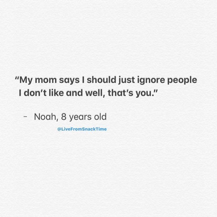 Some kids are just hilariously honest, like the 8-year-old who said, “My mom says I should just ignore people I don’t like and well, that’s you.” Dang, that’s harsh, Noah.