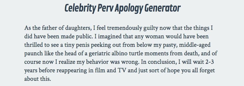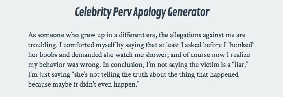 The generator was born out of the idea that the types of apologies we've been seeing from celebrities are so generic that they might as well be pre-written or even automated.