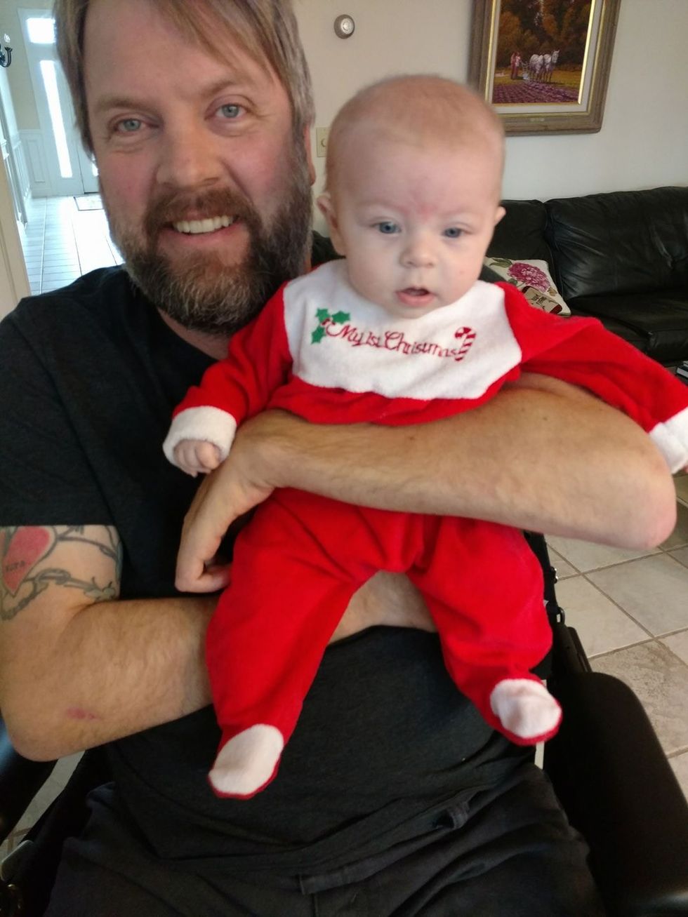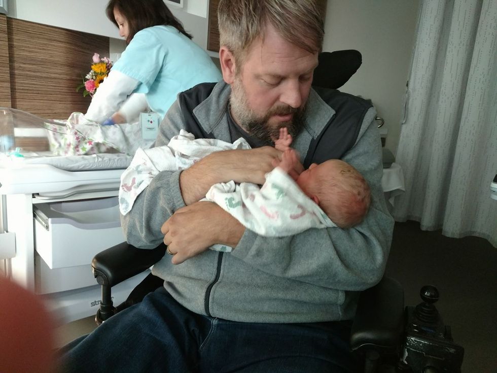 Rides on his wheelchair put our daughter to sleep, and when I was pregnant, I rode on his lap to work. During a depressive episode or a panic attack, I've heard the whir of wheels (footsteps, really) in the hallway and felt my breathing slow because he was home.