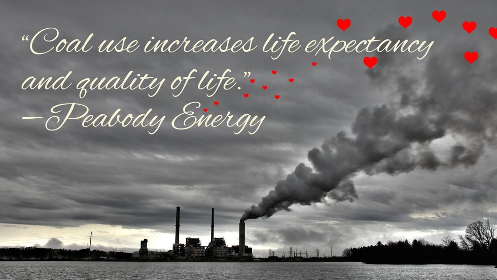 That's right, folks. A real-life executive at Peabody Energy actually said, "Coal use increases life expectancy and quality of life." Pardon me while I scoop my jaw off the floor.