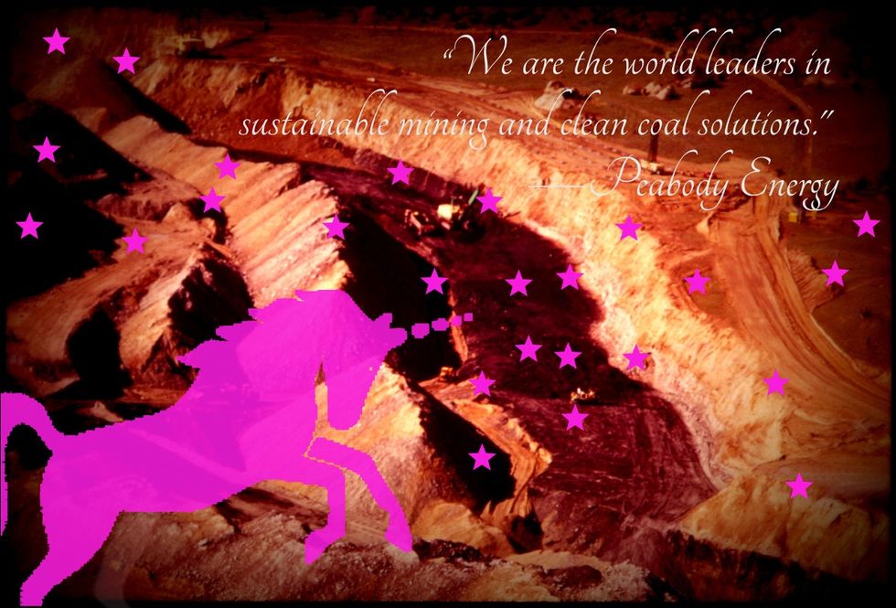 This one is an actual photograph of one of Peabody's eco-fabulous mines. Plus unicorn, because I was just too depressed. You're welcome.