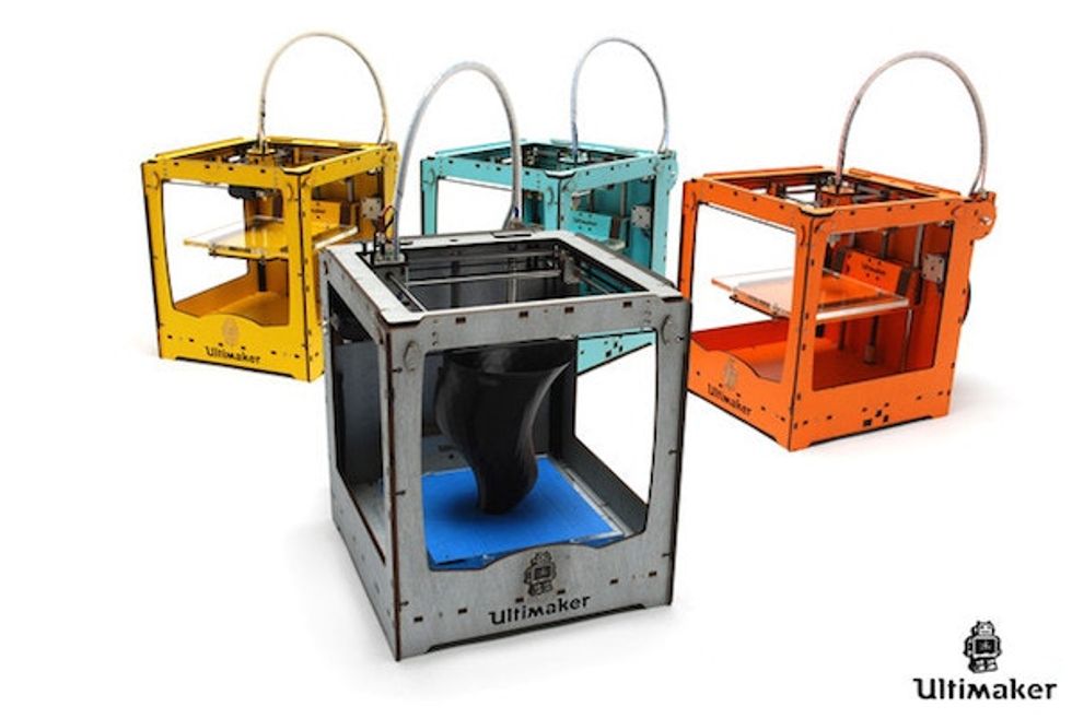 With 3D printers similar to these ones, trained individuals might print 3D prosthetics and supplies for their fellow refugees. Photo by Ultimaker.