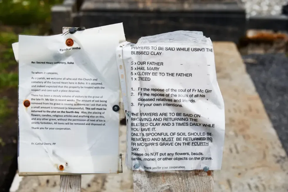 According to legend, in 1815, a local folk healer named Reverend James McGirr supposedly said on his death bed that “the clay that covers me will be able to cure anything that I was able to cure when I was with you when I was still alive.” After the reverend died and was buried, parishioners started traveling to his gravesite in the churchyard to sample the “clay” (aka, the soil) from his grave.