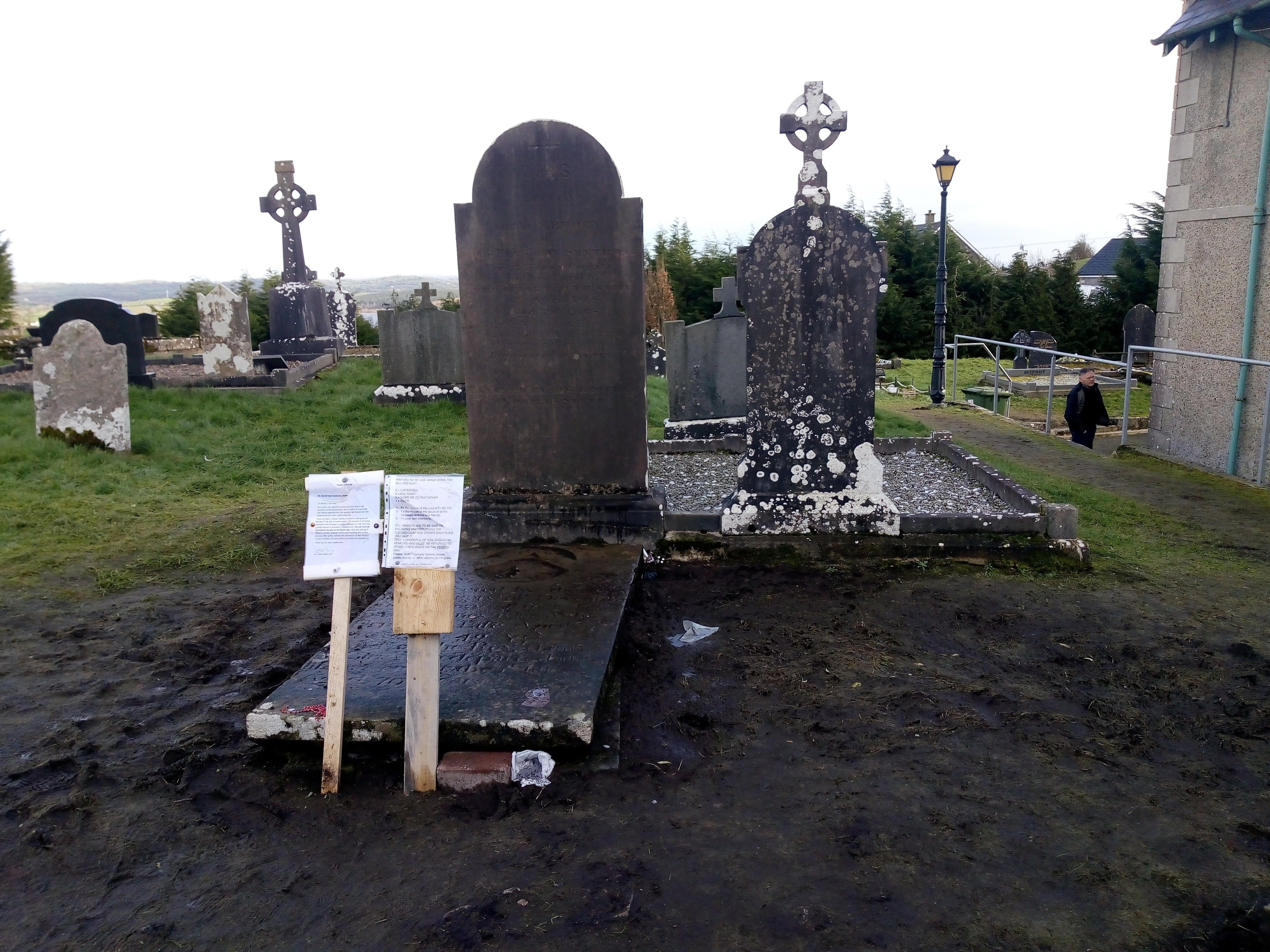 According to legend, in 1815, a local folk healer named Reverend James McGirr supposedly said on his death bed that “the clay that covers me will be able to cure anything that I was able to cure when I was with you when I was still alive.” After the reverend died and was buried, parishioners started traveling to his gravesite in the churchyard to sample the “clay” (aka, the soil) from his grave.