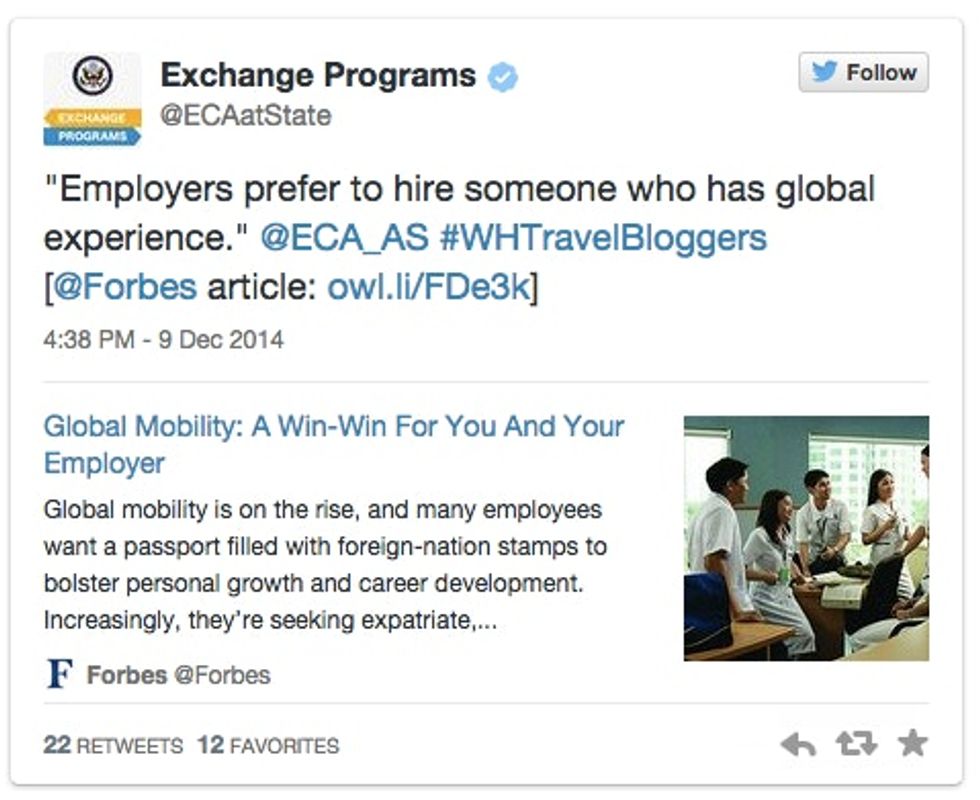 Did you study abroad? How has your experience affected your life? Do you think more students should study abroad? Join the conversation on Twitter using the hashtag #StudyAbroadBecause or by clicking the image below.