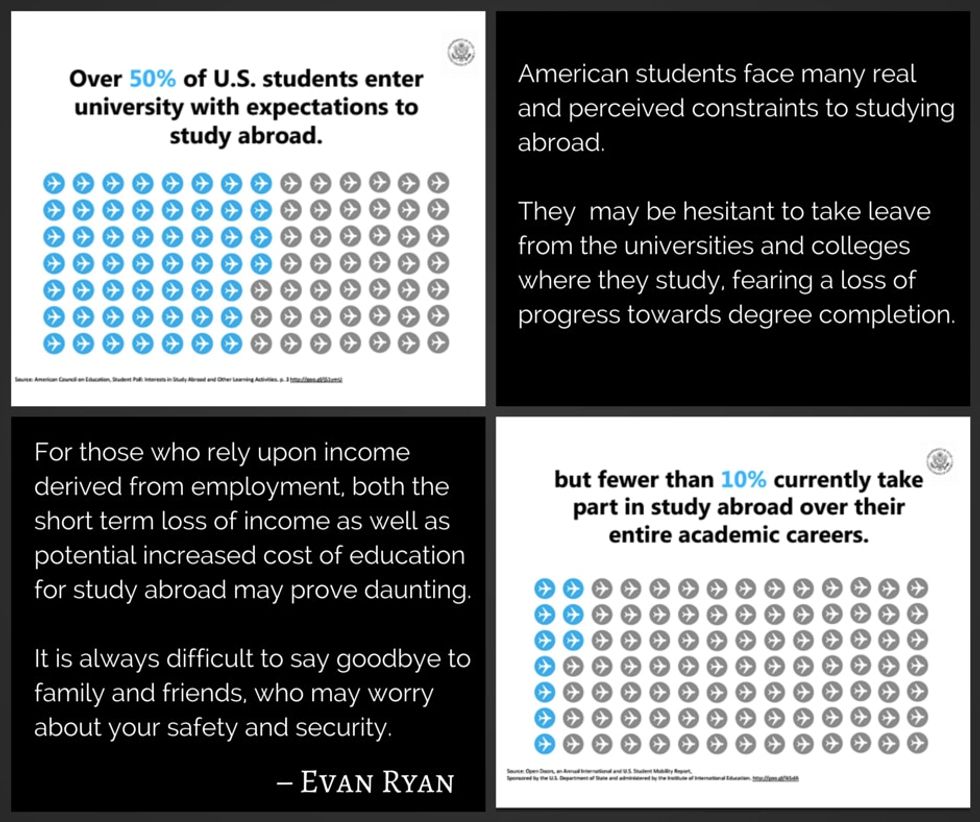 But that doesn't change the fact that studying abroad is daunting for a bunch of reasons. It's no surprise that Assistant Secretary Ryan showed us these slides.