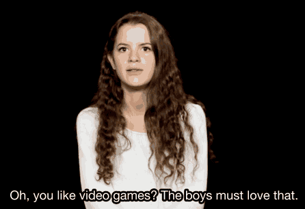 It's not necessarily that woman and girls are told this outright. Most people aren't that direct; they aren't going to say: "Don't play video games. Video games are for boys." They discourage those behaviors in more subtle ways — by expressing surprise that a woman or girl likes a stereotypically masculine thing like whiskey or football (two other examples in the video) and then imply they must only be interested in it because it is appealing to boys or men.