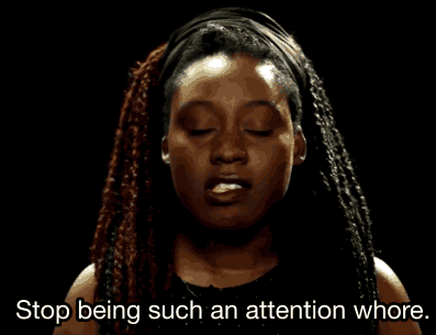 The video shows how these comments progress as girls get older: "Don't wait after school, you're going to distract the boys," which becomes, "Don't be a slut," which becomes, "No guy wants to have sex with a virgin," which becomes, "How much did you have to drink that night?" and finally, "What were you wearing that night?"