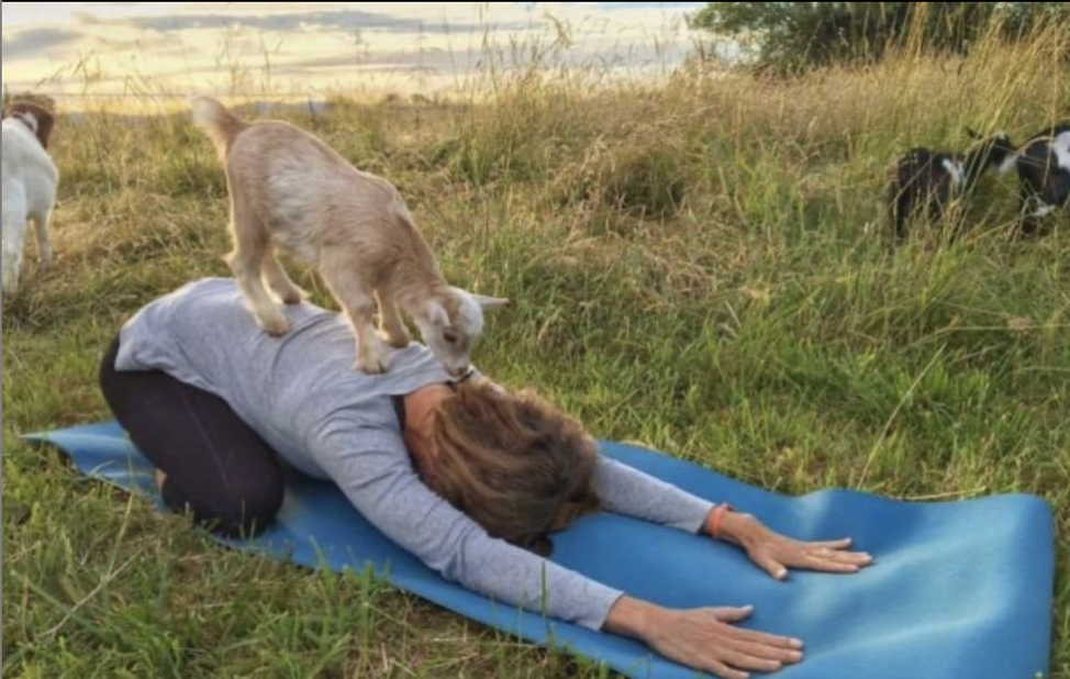 Goat yoga went viral so much so that by fall of 2016, Lainey was able to quit her office manager job at a remodeling company to manage her burgeoning goat yoga business full-time. Now she has 10 locations nationwide.