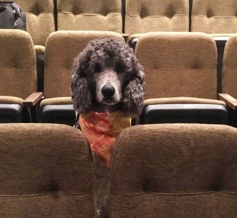 The dogs got to enjoy the show from their own seats and took a break with everyone else during intermission. They were able to familiarize themselves with the theater experience so they know how to navigate through crowds and fit into tight bathroom stalls.