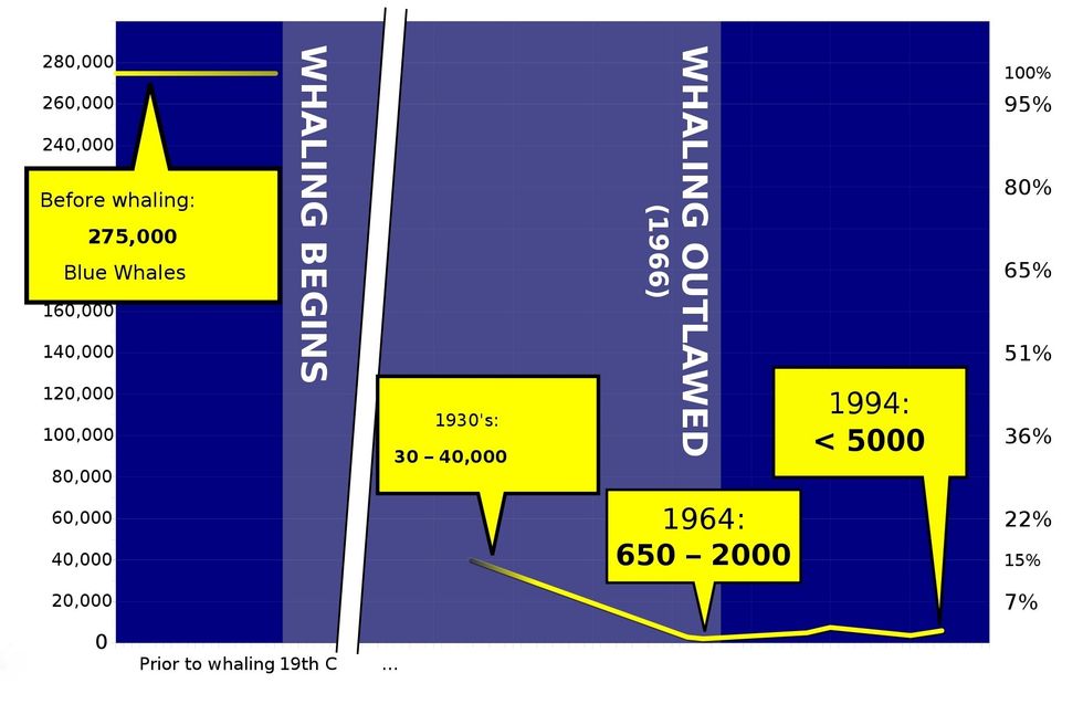But the latest news is that, because they're protected, the numbers of California blue whales have rebounded to where they were before whaling.