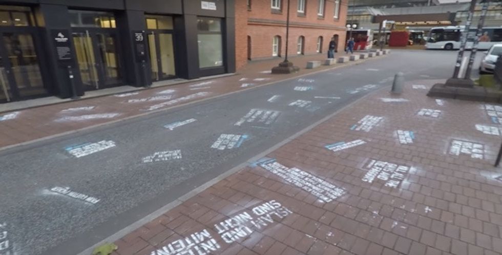 Early in the morning, Shapira and a crew of workers arrived on the doorstep of Twitter's German headquarters in Hamburg and proceeded to stencil roughly 30 of the worst ones right on their doorstep.