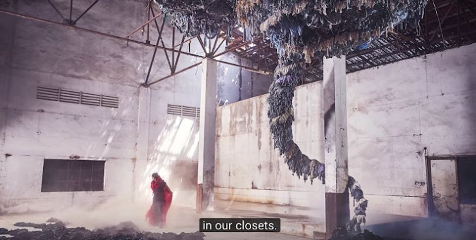 In partnership with Laura François and her nonprofit, clothingtheloop.org, Von Wong took thousands of garments that were left in an abandoned factory in Cambodia and made several installations to accent how wasteful the fashion industry has become. You can check out how they made them here.