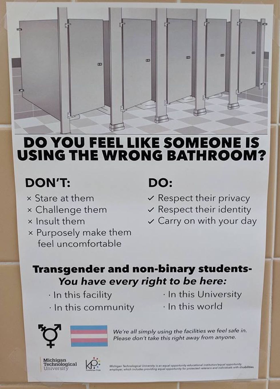 Michigan Technological University's bathrooms signs are being widely shared for good reason.
