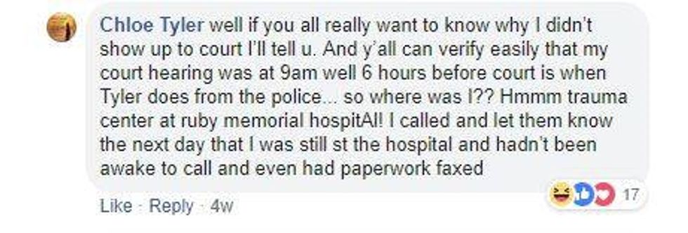 She then went on a rant claiming she couldn’t make it to her court date because she was sedated at a hospital in nearby Morgantown, West Virginia.