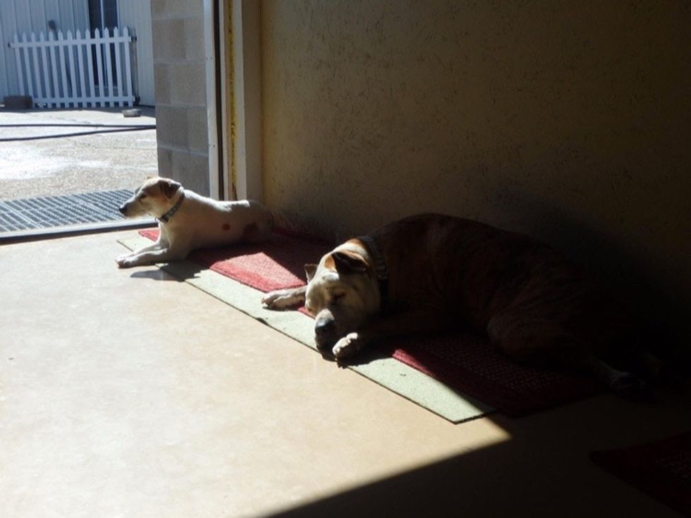 They spend the rest of their time snuggling and playing with the other dogs or hanging out with Skarritt-Nelson.