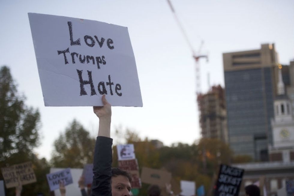 Anti-Trump demonstrators in Chicago in November 2016. Photo by Scott Olson/Getty Images.