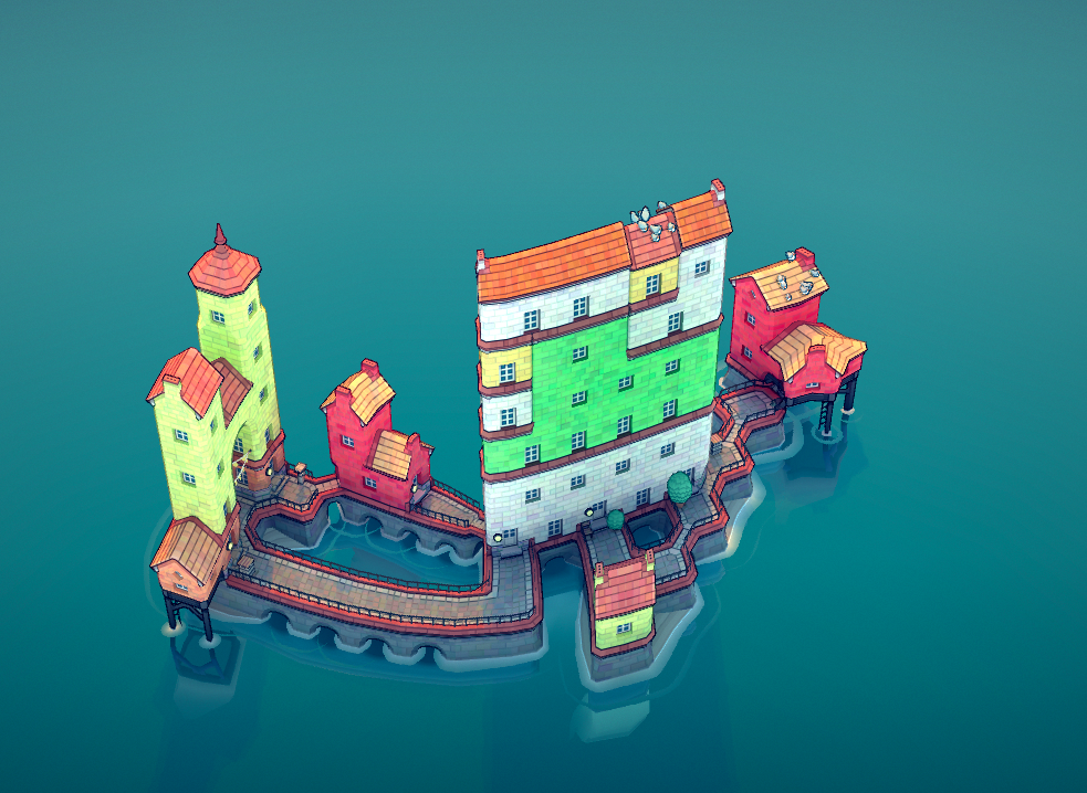 A couple of people started sharing their Wordle results in the form of townscapes from the Chrome browser version of Townscaper by Oskar Stalberg, which end up looking like this: