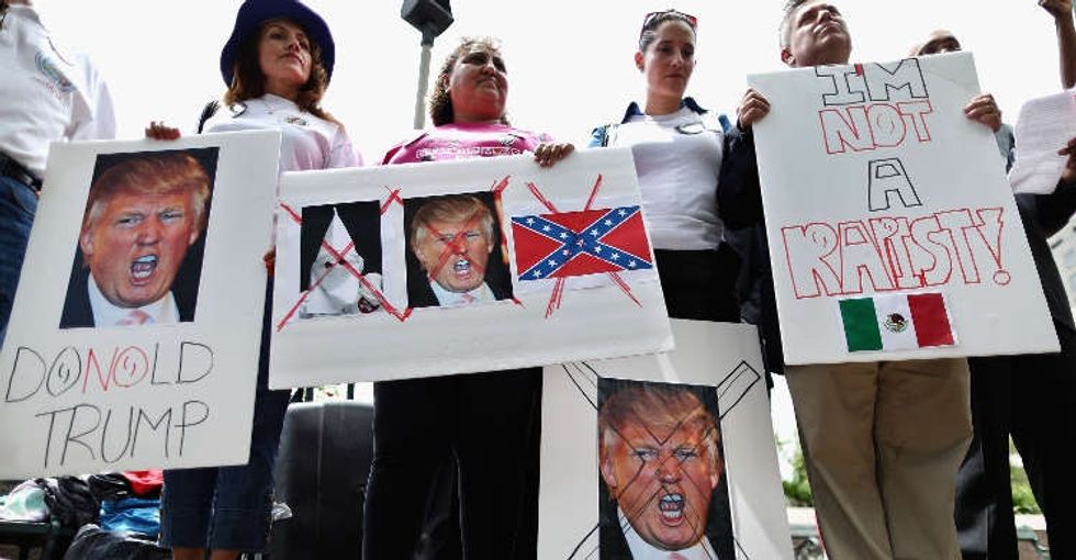 Latino activists protest Donald Trump. Photo by Chip Somodevilla/Getty Images.