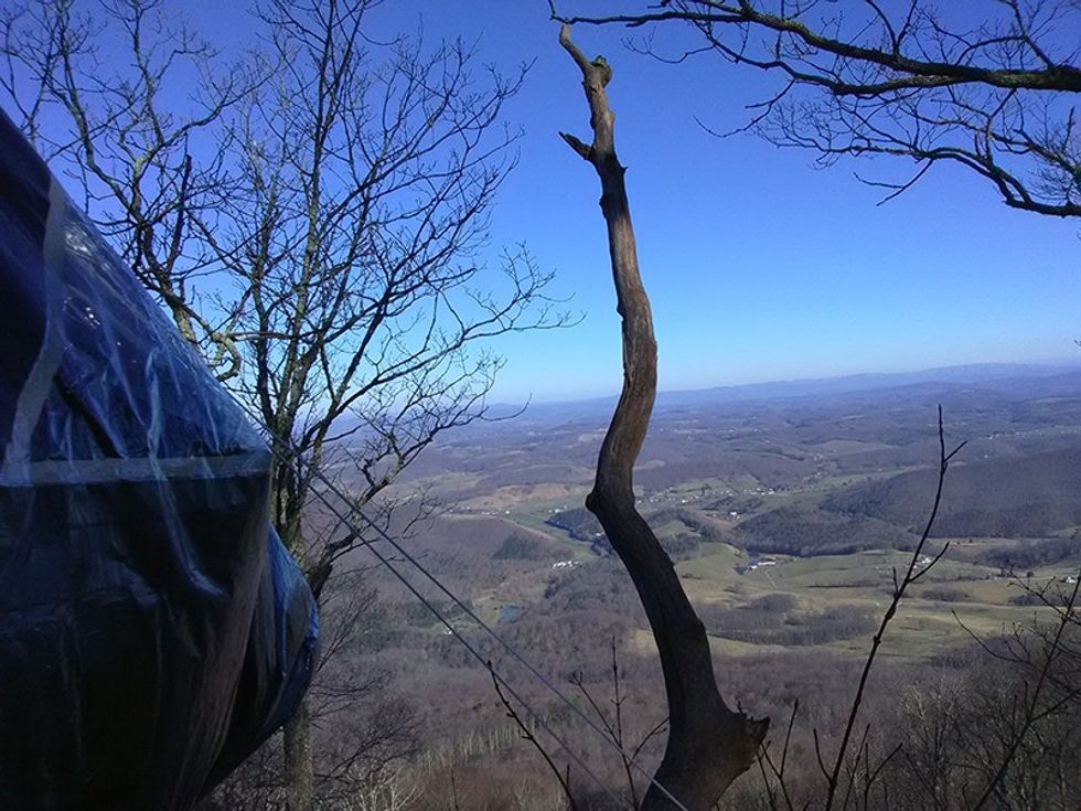 When Abigail peeks out from her perch — a wooden platform dangling high in a tree on a mountain ridge in West Virginia — she sees a nearly picture-perfect landscape.