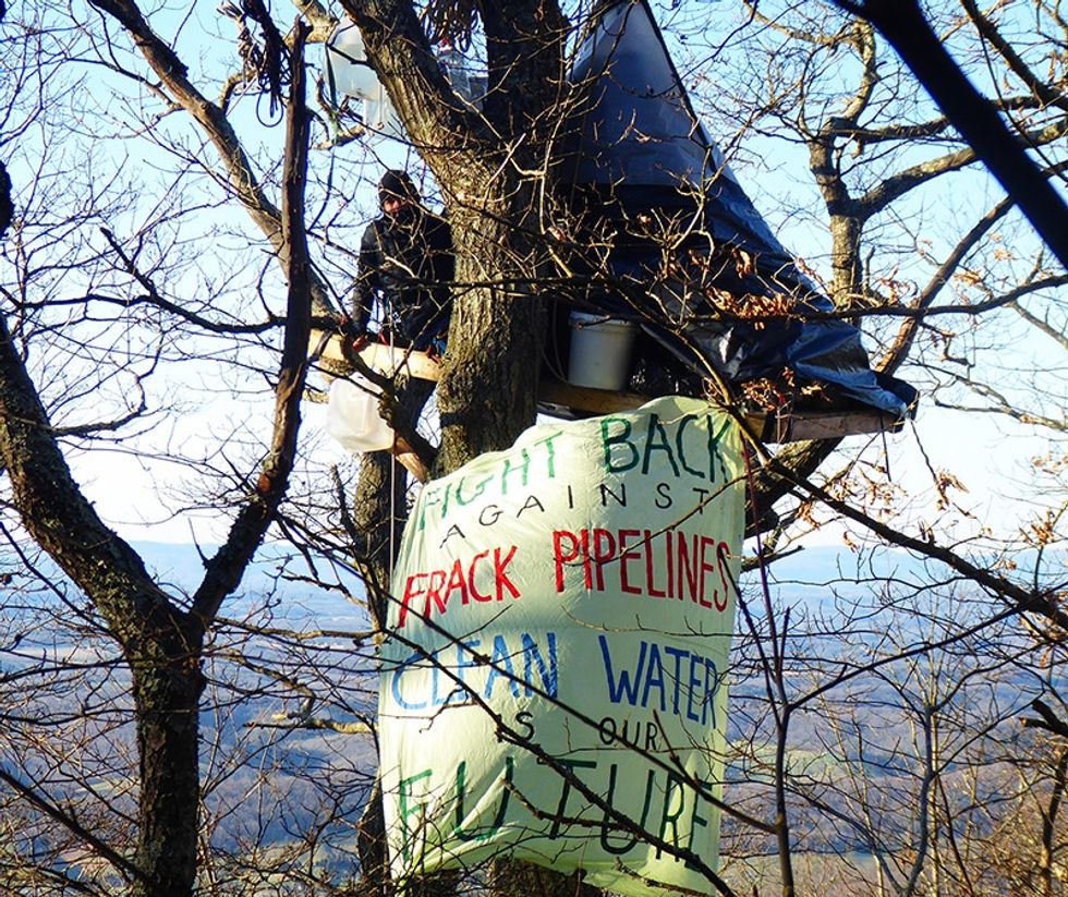 She chose the tree she’s in for a reason: It sits right where the Mountain Valley Pipeline is slated to carry natural gas through the fragile limestone terrain beneath its roots.