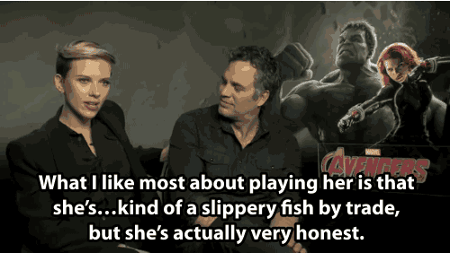 You know, like questions about her character, Black Widow, and why she likes playing her.