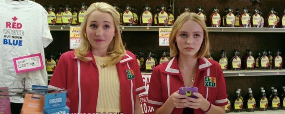 Harley Quinn Smith and her co-star Lily Rose Depp in "Yoga Hosers." Photo via Kevin Smith/YouTube.