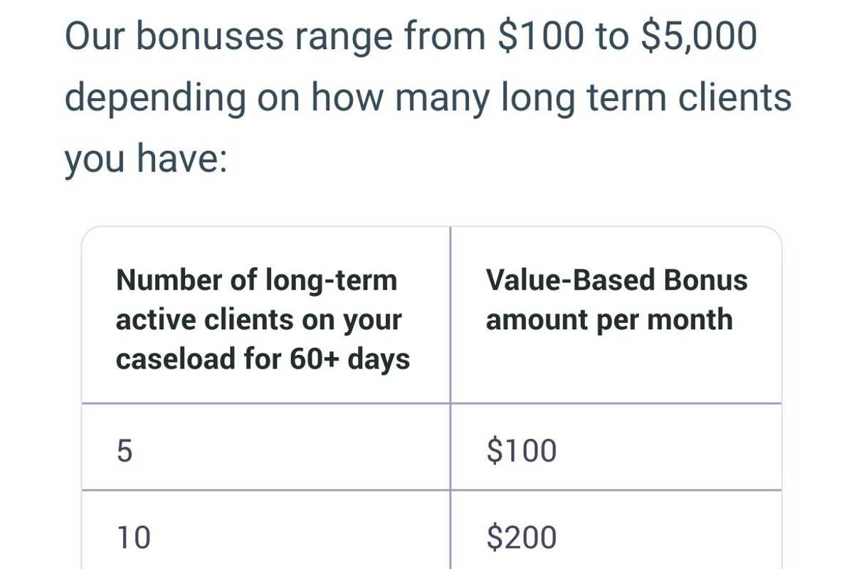 Bonus ranges for client retention.