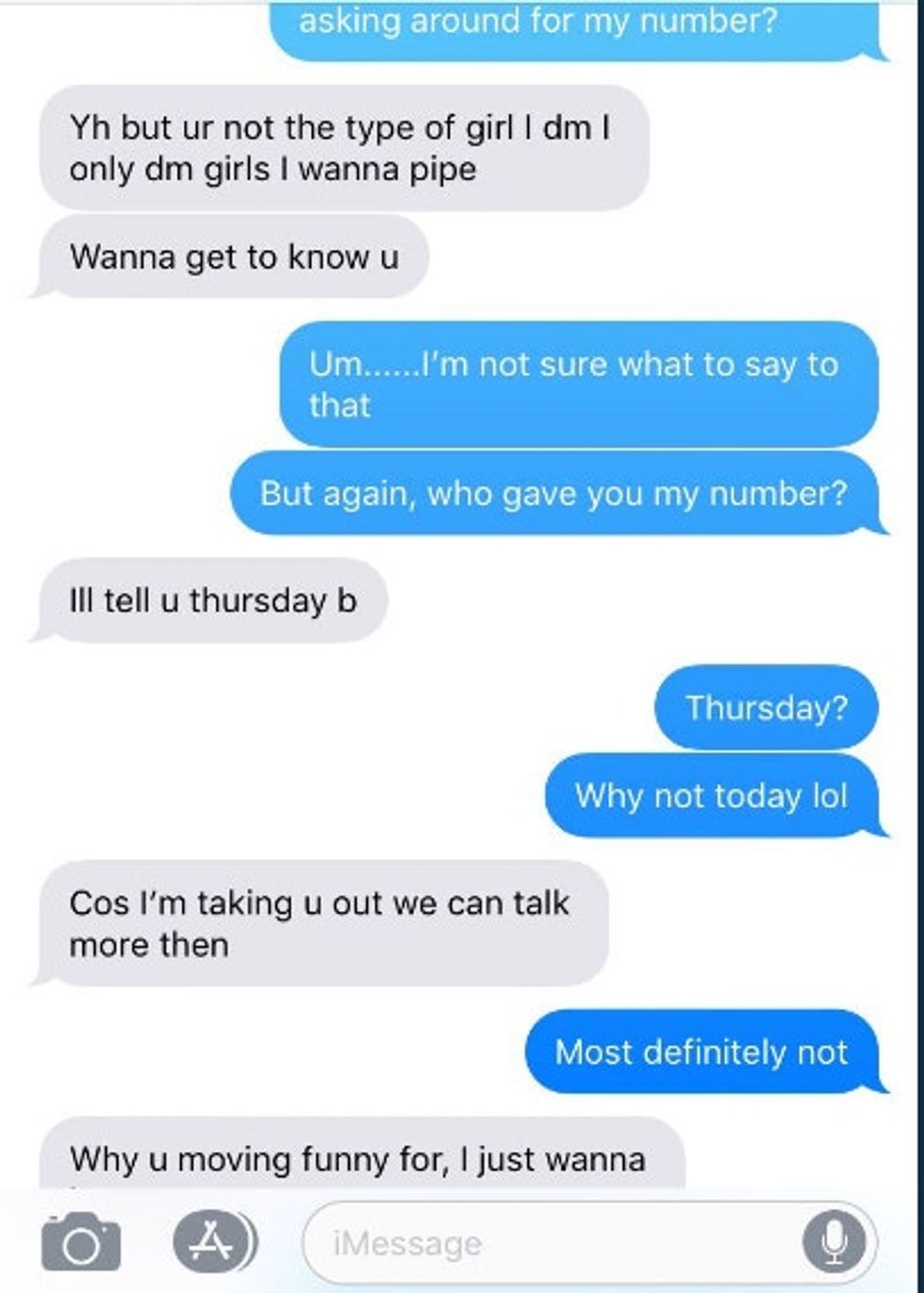 Woman's creepy texts from a total stranger show the dangers of being female in public.