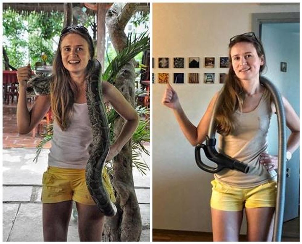 Lithuanian traveler, writer, and journalist Liudas Dapkus, invited people to relive their adventures abroad by recreating their favorite travel photos in their homes.
