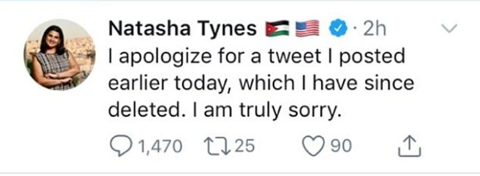 Tynes quickly issued an apology tweet and shut down her Twitter account and then her personal website.