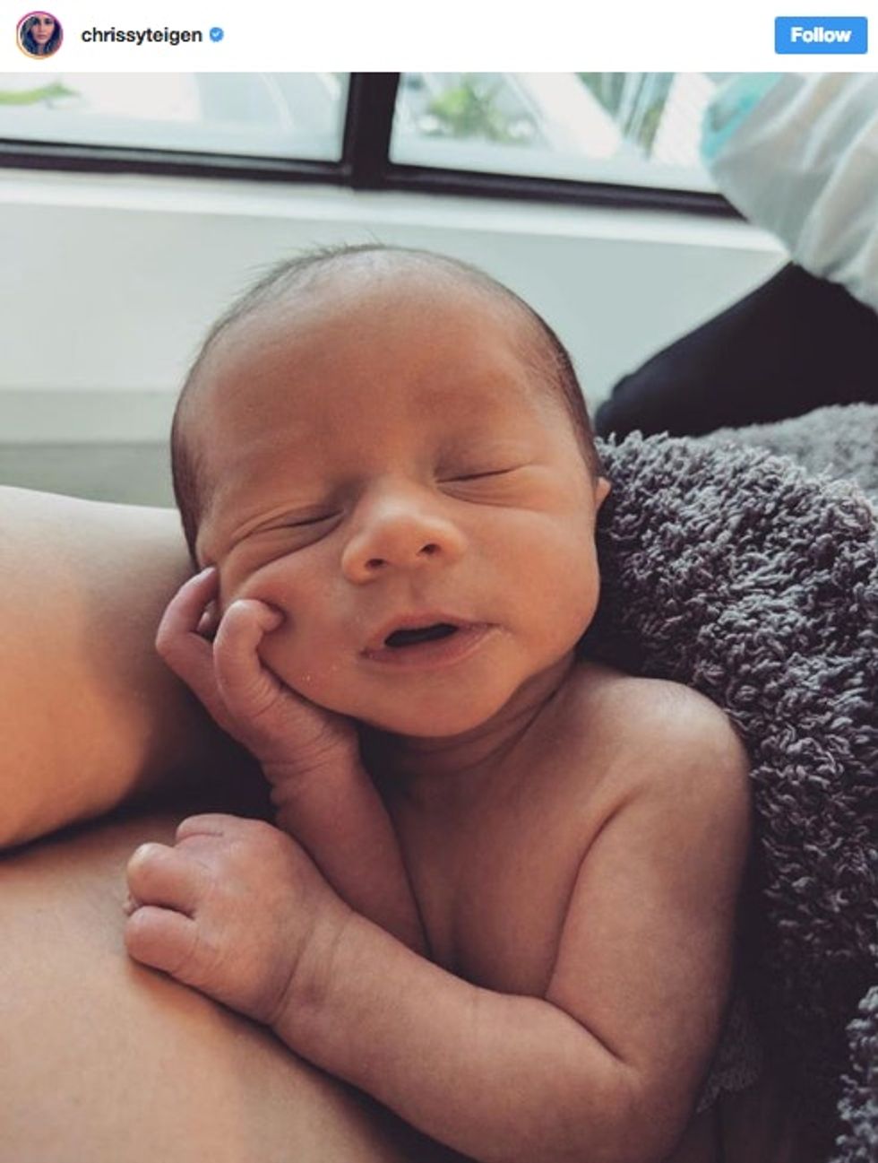 "This is Miles Theodore Stephens," Teigen captioned a photo posted on May 17, 2018. "We are drowning in his little peeps and nuzzles. Our household feels overwhelmed with love."