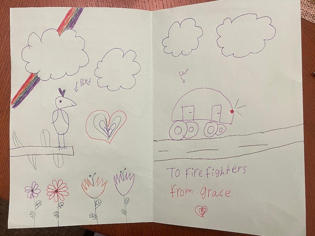But it was their conversation after that really put things into perspective for Beth. When Grace was asked how she was feeling, she said she just hopes they can “keep going.” She also relayed she felt just a little better knowing that maybe, just maybe, the cards and drawings would help firefighters and victims “not give up.”